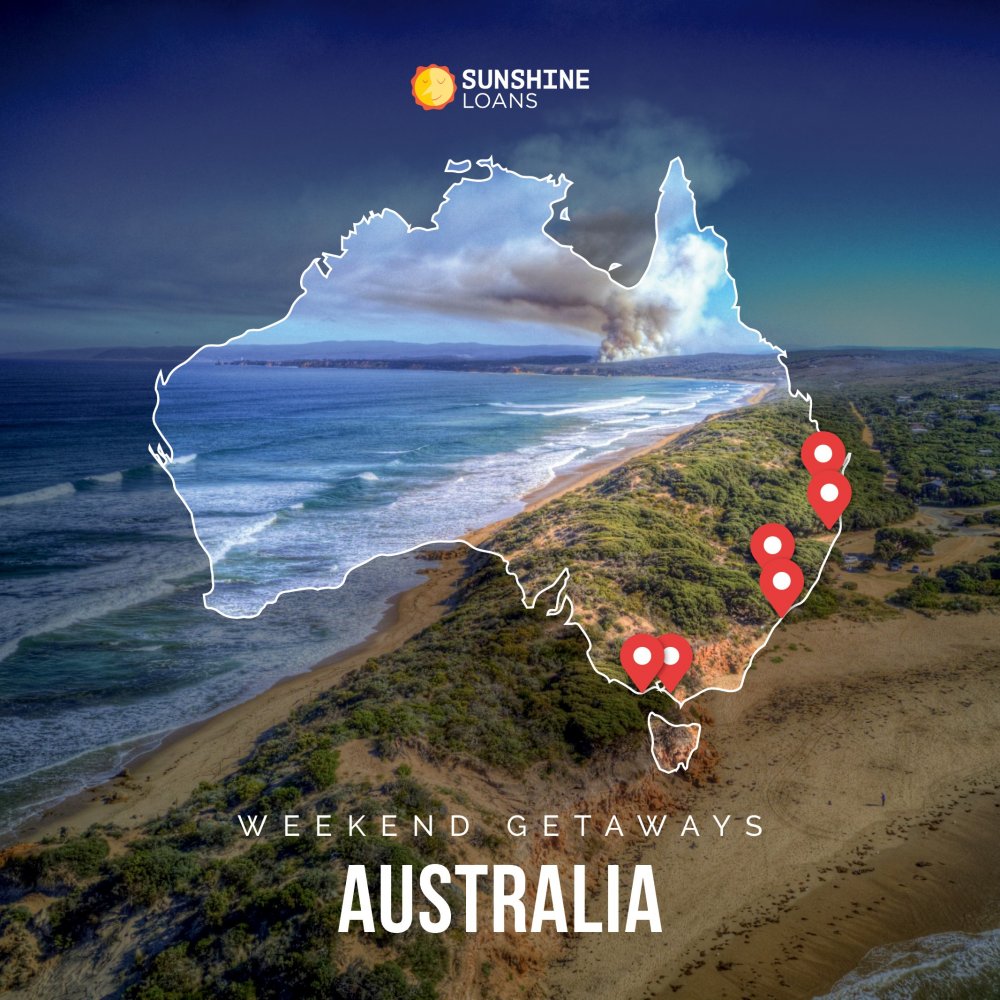 Weekend Getaways in NSW If you are searching for weekend getaways outside of Sydney, then these mini vacations are the perfect escape. For your next long weekend in NSW, checkout our top two destinations: 1. The Blue Mountains On Sundays you can get a return trip by train to this World Heritage area for only $2.70. However, we recommend renting a car and going up for a full weekend to take advantage of the natural wonders. - Three Sisters at Echo Point